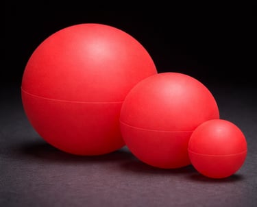 Silikon kauçuk toplar; kullanım amacına göre farklı çap, ağırlık ve sertlik değerlerinde üretilebilir. Esneklik ve yüzey hissi ihtiyaca göre şekillendirilir.